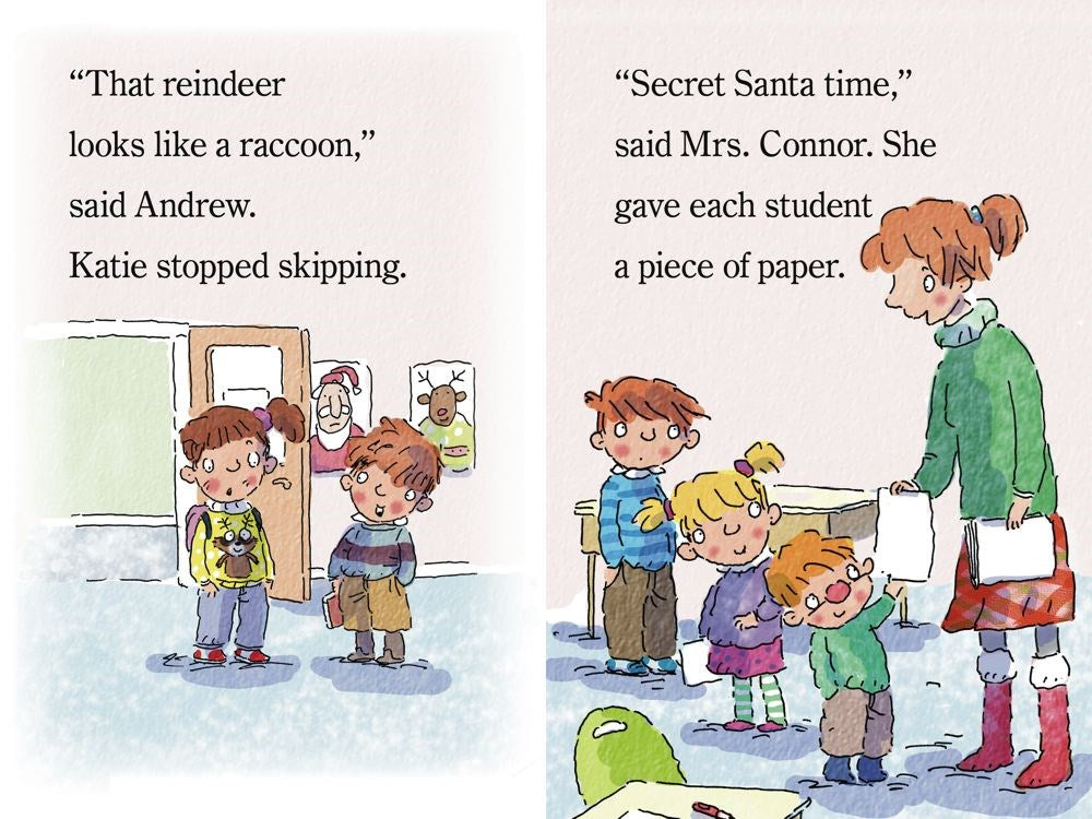 It is Secret Santa Day at school, and Katie is wearing her special Christmas sweater. But Andrew makes fun of her outfit, calling the reindeer on the sweater a raccoon. When it comes time to pick names from the Santa hat, Katie hopes she doesn’t pick Andrew’s name. But she does! How can Katie give Andrew a gift when he’s been so mean to her?