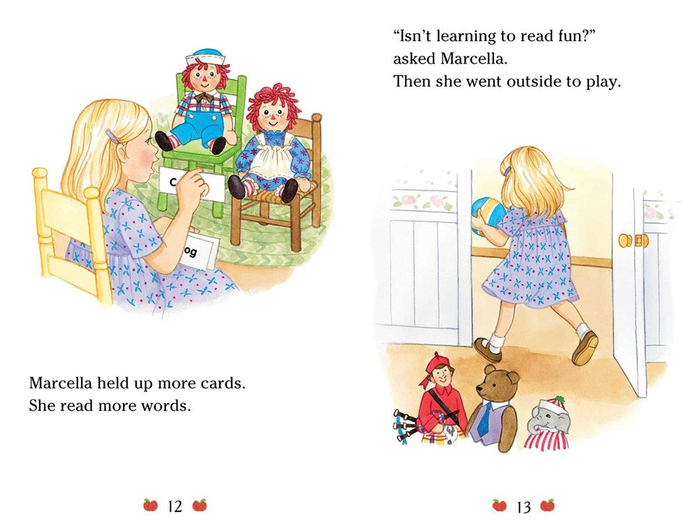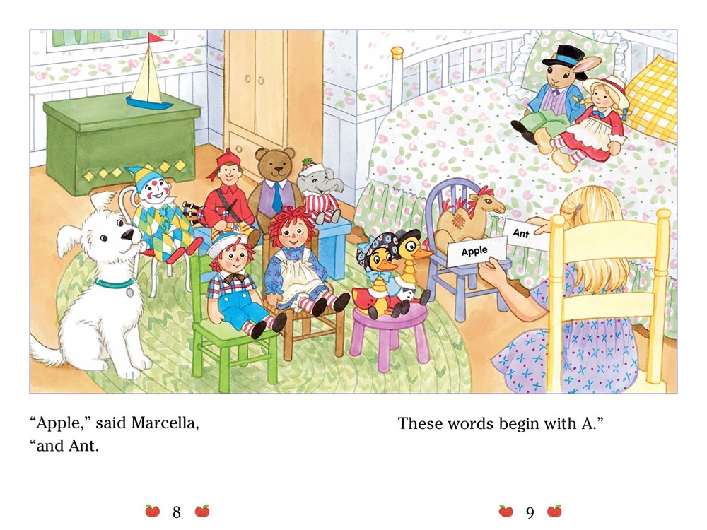 Marcella is learning to read—and she decides her dolls should learn how to read, too, so she begins teaching them! When she leaves, Raggedy Ann takes over and all of the dolls are having so much fun learning the different letters. But when the letter cards get all mixed up, the dolls have to put them back in order before Marcella returns! Can they use what they’ve learned to fix them in time?