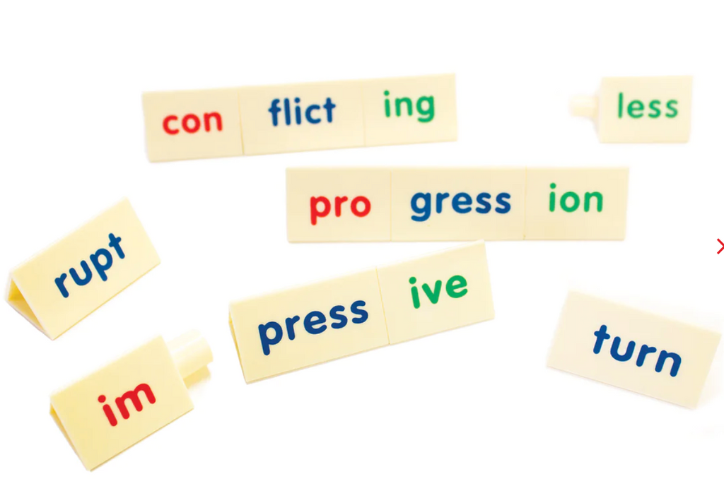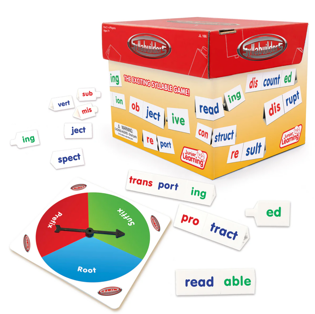 The exciting syllable game! Have fun with prefixes, suffixes and root words. Connect syllables with your Tri-Blocks to create multi-syllabic words. Turn the Tri-Blocks to manipulate meanings within words. Challenge your friends to see who can make the most words.
